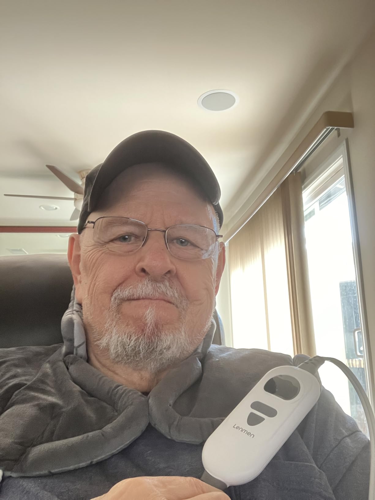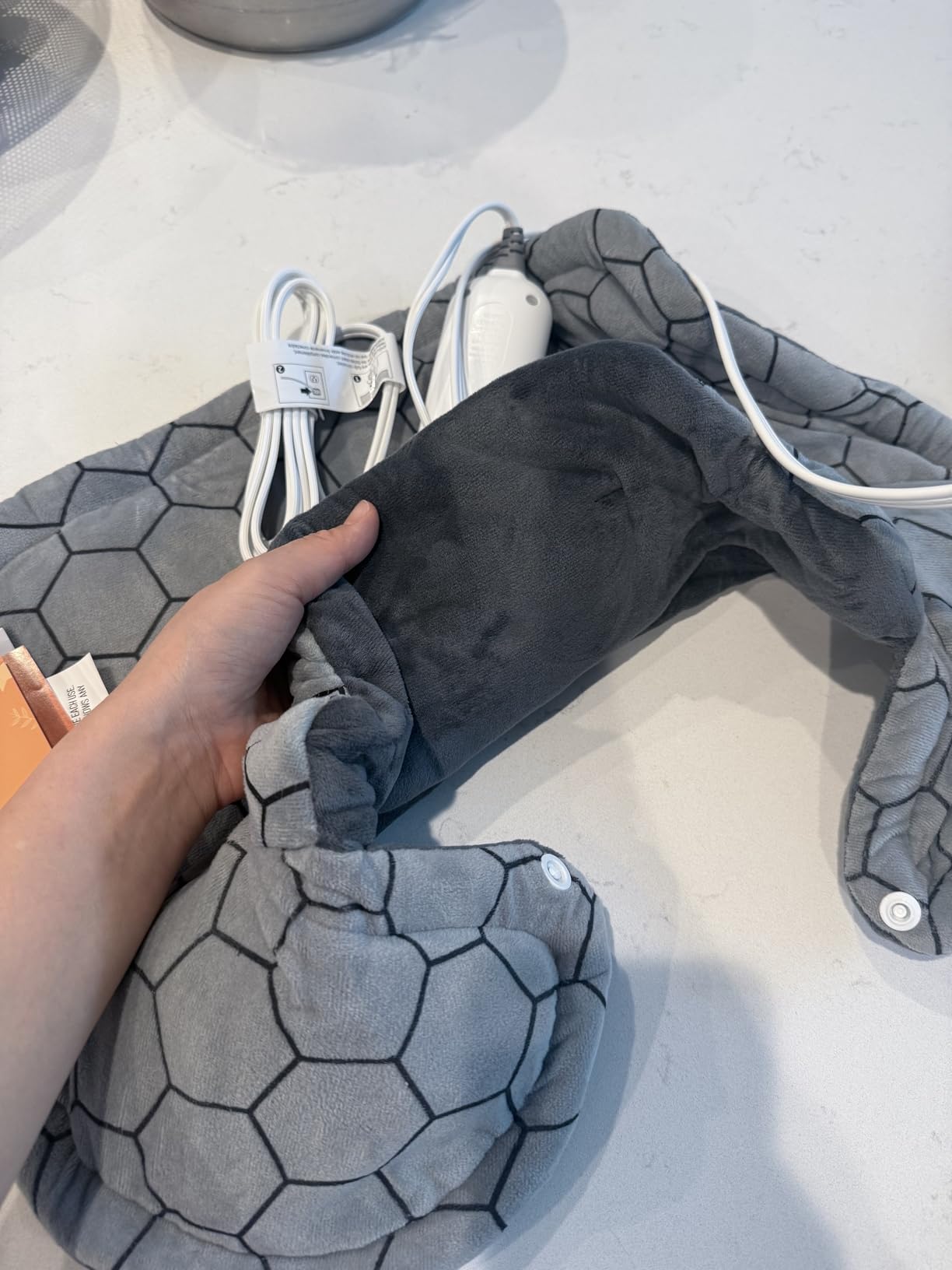 Soft fabric, gentle warmth, and easy USB plug. Great for office use
