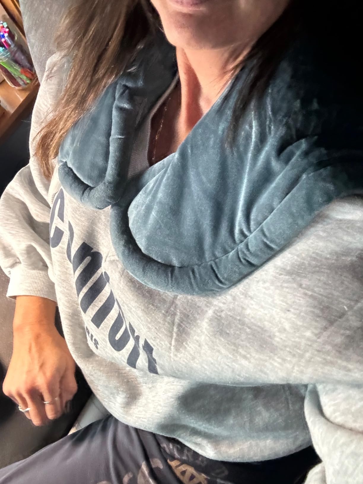 Perfect for cold evenings! Warms my neck quickly and feels super cozy